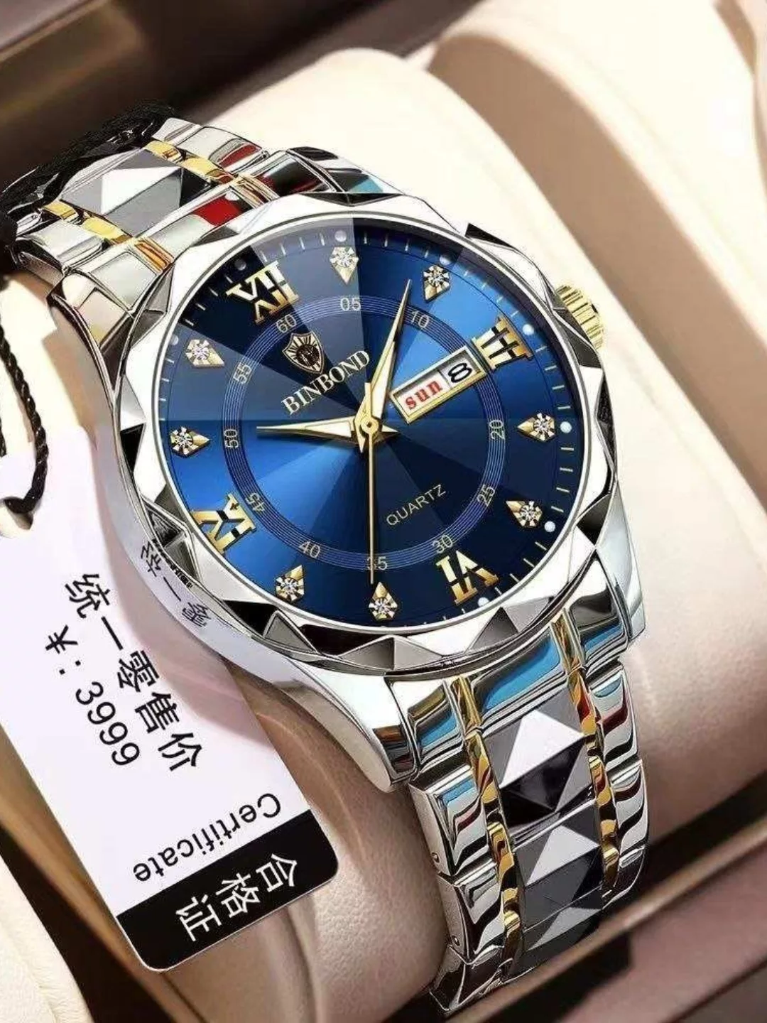 ساعت اورجینال بین باند به ضمانت اصالت کالا موتور ژاپن اصلی ضدآب با قاب تراش الماسه و دو تقویم: ایام هفته و روز شمار ماه. بند استیل الماسی خاص و جذاب، شیشه سافایر و قاب براق درخشان.